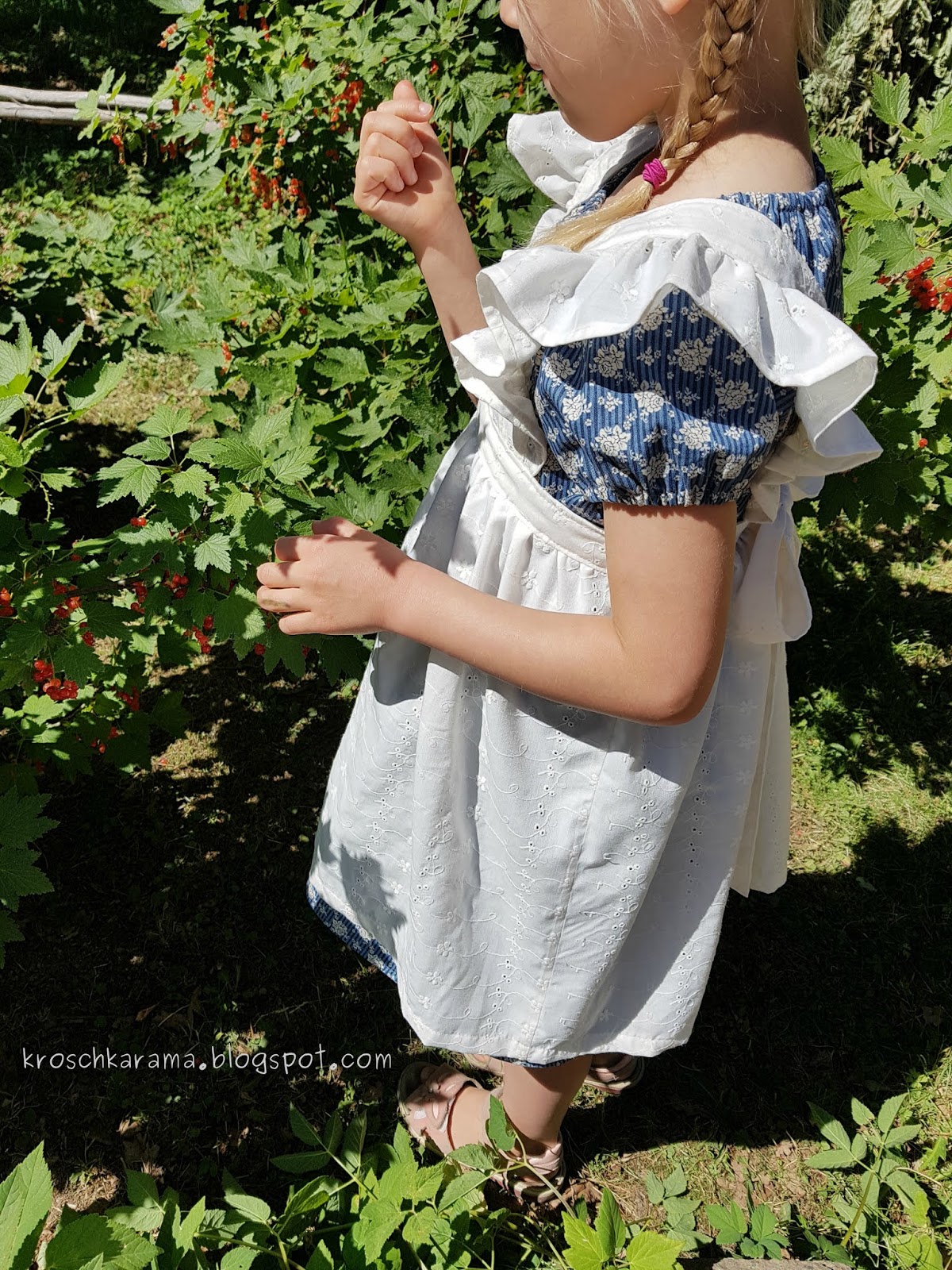 So im Nachhinein hätte ich das Kleid zumindest in der Länge eine Größe nähen können. Die Schürze passt hingegen ziemlich gut. Ich werde das Kleid nun einfach um eine Rüsche am Saum ergänzen, dann ist es auch nächsten Sommer noch tragbar. Und damit ich das auch wirklich mache, schreibe ich es hier auf. :-)